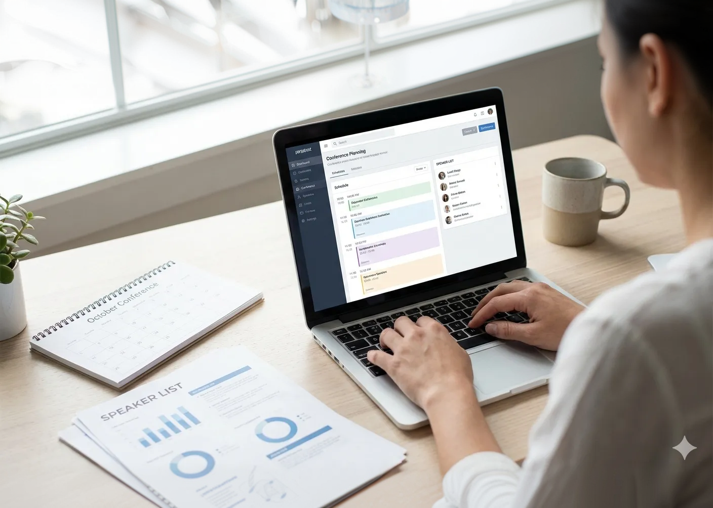 Design your conference agenda using a drag-and-drop scheduler for plenary sessions, parallel tracks, and workshops